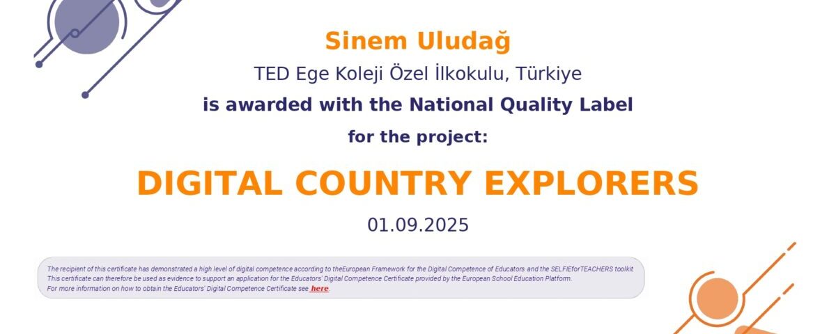 OKULUMUZ E-TWINNING PROJESI KAPSAMINDA ULUSAL KALİTE ETİKETİ İLE ÖDÜLLENDİRİLDİ