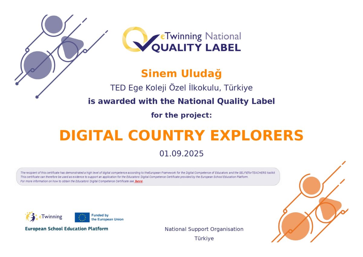 OKULUMUZ E-TWINNING PROJESI KAPSAMINDA ULUSAL KALİTE ETİKETİ İLE ÖDÜLLENDİRİLDİ