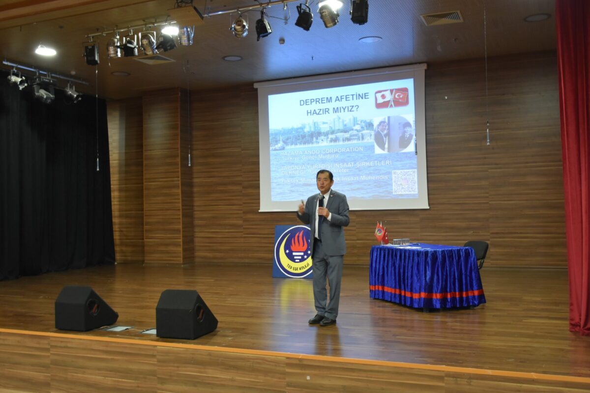 Japon Deprem Uzmanı, Yüksek Mimar, İnşaat Mühendisi “Yoshinori Moriwaki” tarafından gerçekleştirilen sunumda 4,5,6 ve 7.sınıf öğrencilerimize, basit afet yönetimi, koruyucu 5 önemli davranış, deprem eğitiminin önemi hakkında detaylı bilgiler verilmiştir.