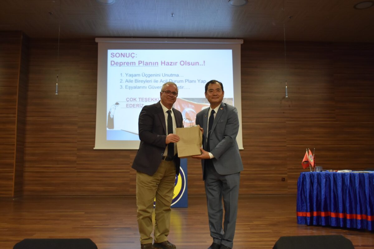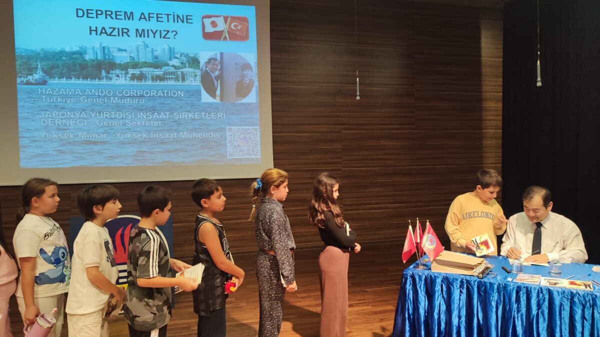 Sunum sonrasında öğrencilerimiz için kitaplarını da imzalayan Değerli Deprem Uzmanı Sayın Yoshinori Moriwaki’ye bu anlamlı sunum ve farkındalık çalışmasındaki katkılarından dolayı çok teşekkür ediyoruz.