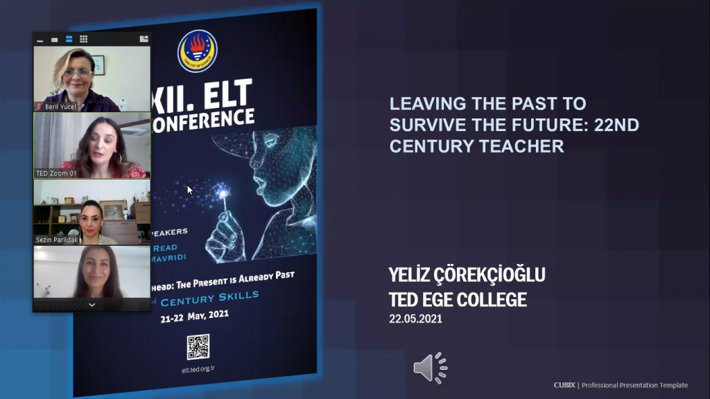 Okulumuz İngilizce Öğretmenleri Nurcihan DURMUŞ ve Yeliz Yalçın Çörekçioğlu’nun sunumlarının da yer aldığı konferansta Ortaokul zümre başkanı Zeynep Jülide AĞAN moderatörlük görevini üstlenmiştir.